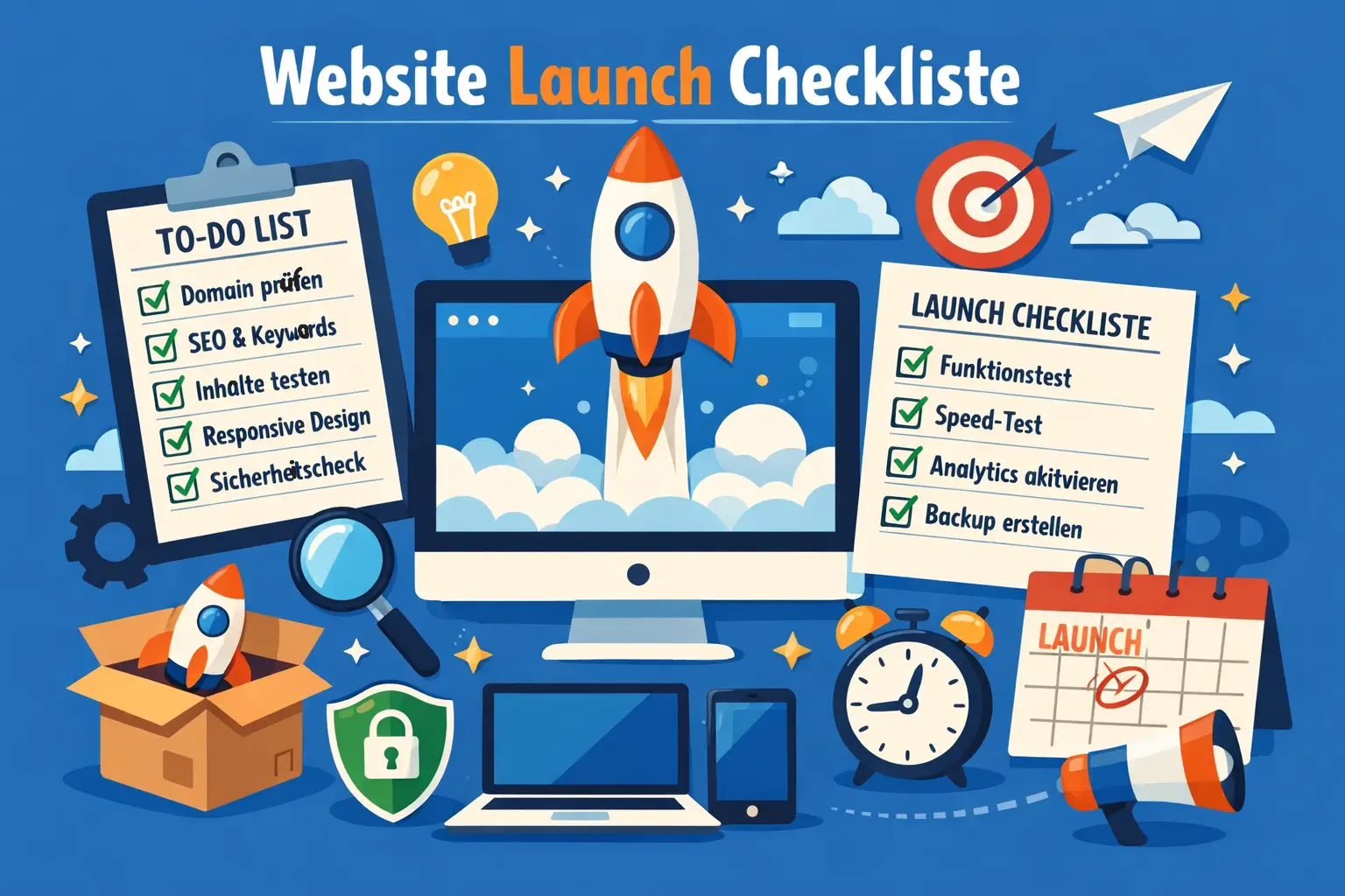 Eine praktische Launch-Checkliste: SEO, Performance, Tracking, Rechtliches und Technik – damit beim Go-Live nichts schiefgeht.